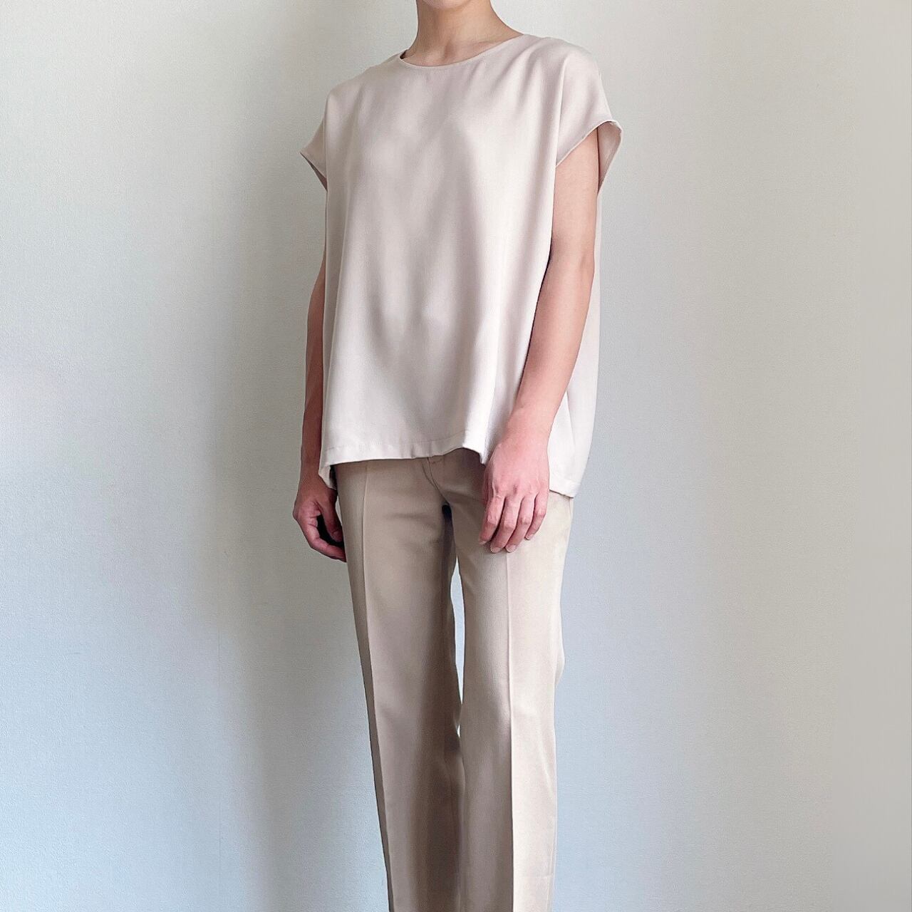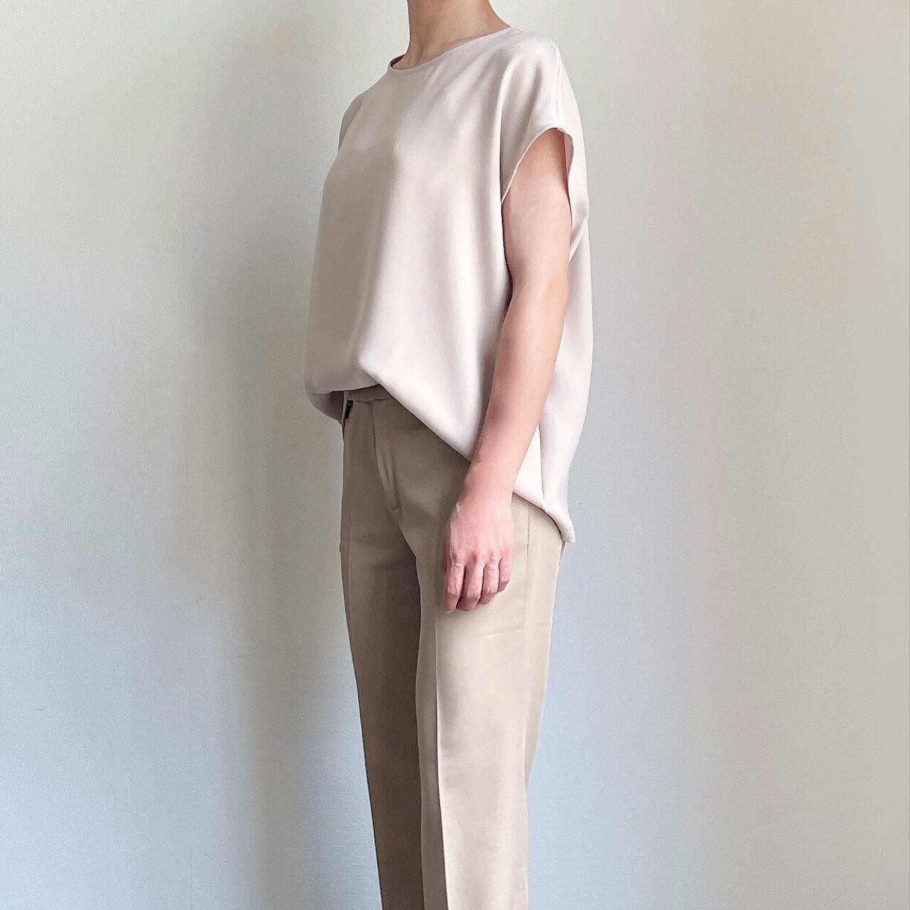 ダブルフェイスサテンフレンチスリーブブラウス